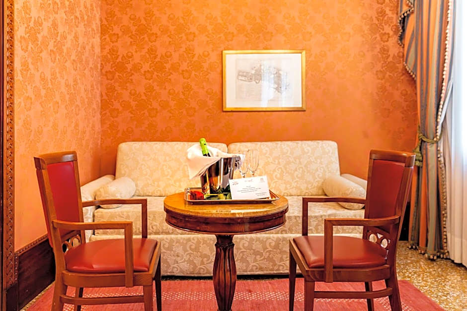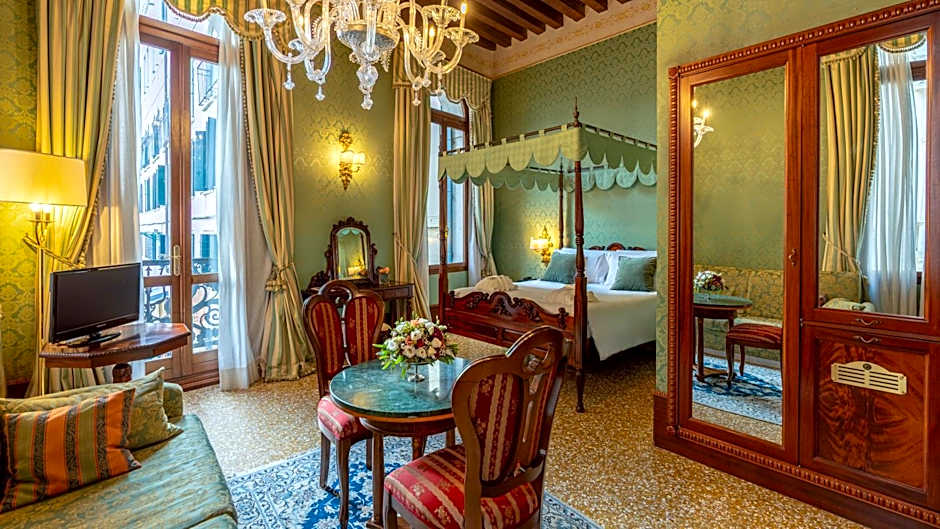 Spacious, uniquely decorated junior suite overlooking a characteristic Venetian street. Features a bedroom and a relaxation area.